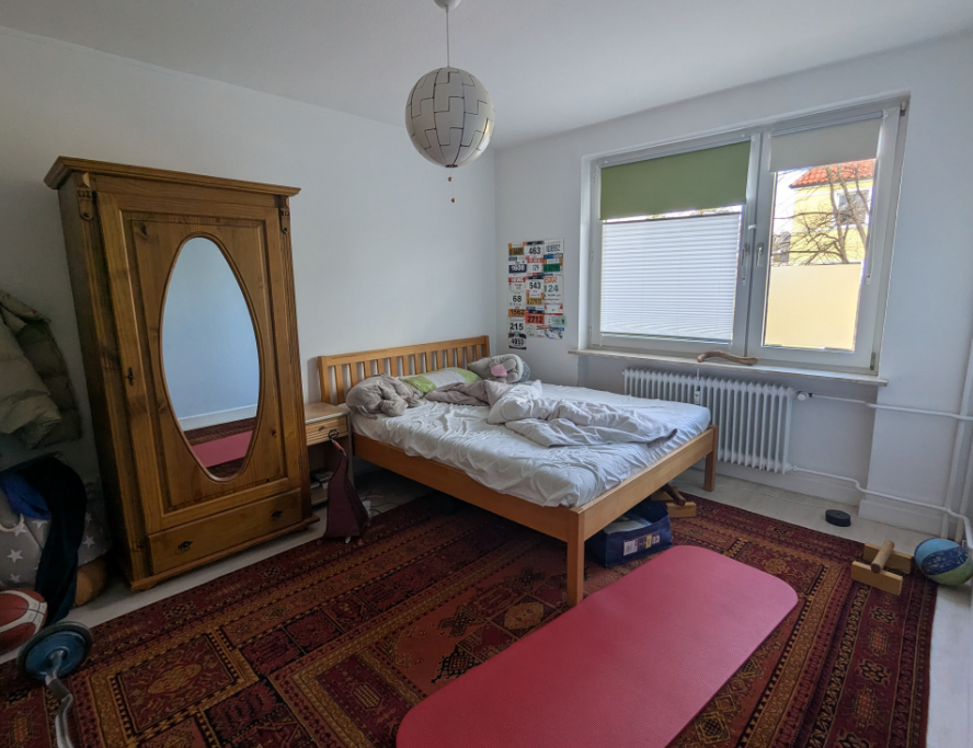 Ich gehe in ein einjähriges Sabbatjahr und vermiete daher meine komplett möblierte Wohnung. Persönliche Sachen lagere ich im Keller, daher ist dieser nicht zugänglich. Die Wohnung befindet sich in einem ruhigen 50er Jahre Wohnhaus mit fünf anderen Mietern. Parkplatz ist vorm Haus mit einem Anwohnerparkausweis möglich. Die Treppenreinigung muss im Wochenwechsel selbst erledigt werden. Toller Balkon zur ruhigen Südseite. Fußläufig ist die Stadtteilstraße gut erreichbar (10min), dort gibt es alle gängigen Einkaufs- und Dienstleistungsmöglichkeiten.