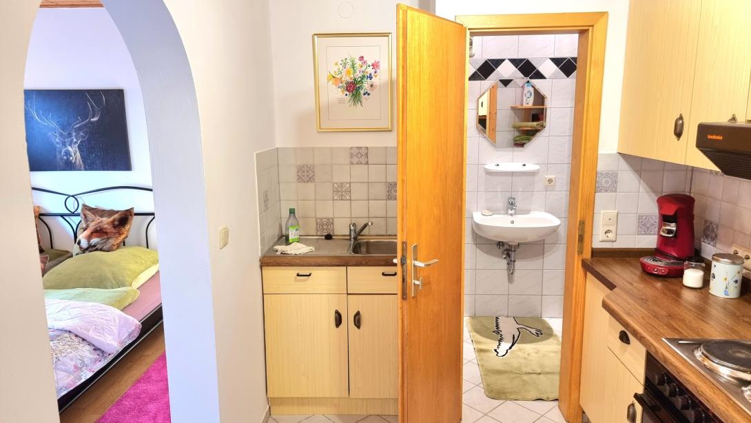 Du bewohnst hier ein möbliertes Zimmer mit kleinem eigenen Duschbad und einer kleinen Kochmöglichkeit. Und kannst den großen Heil-Raum als Dein Wohnzimmer (mit)nutzen. Das alles ist Absprachesache... wenn die Chemie passt, kannst Du den Heil-Raum auch auf Dauer ganz für Dich nutzen.