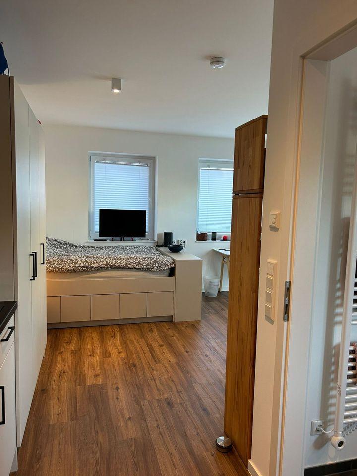 Es handelt sich um ein Zimmer mit eigenem Badezimmer. Die Küche und Wohnzimmerwerden gemeinschaftlich benutzt.