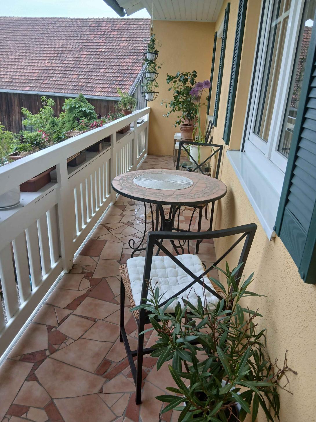 Es sind sowohl ein großer Naturgarten wie auch Terrasse und Balkon vorhanden.